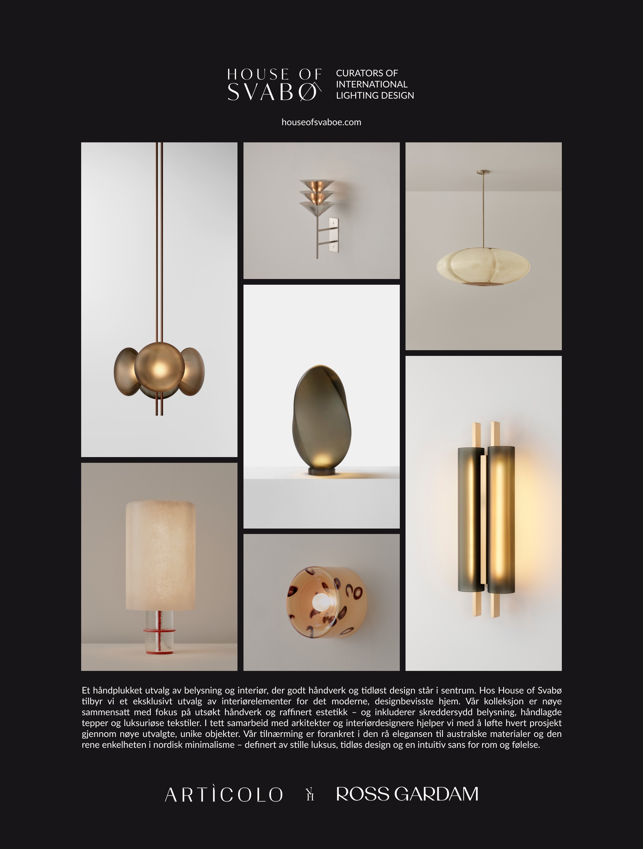 In late 2025, I was approached by House of Svabø, a Norwegian design house offering a carefully curated selection of handcrafted interior objects, lighting, and refined décor rooted in craftsmanship and quiet luxury, to create a series of grid-based full-page ads for their feature placement in Interiørmagasinet.