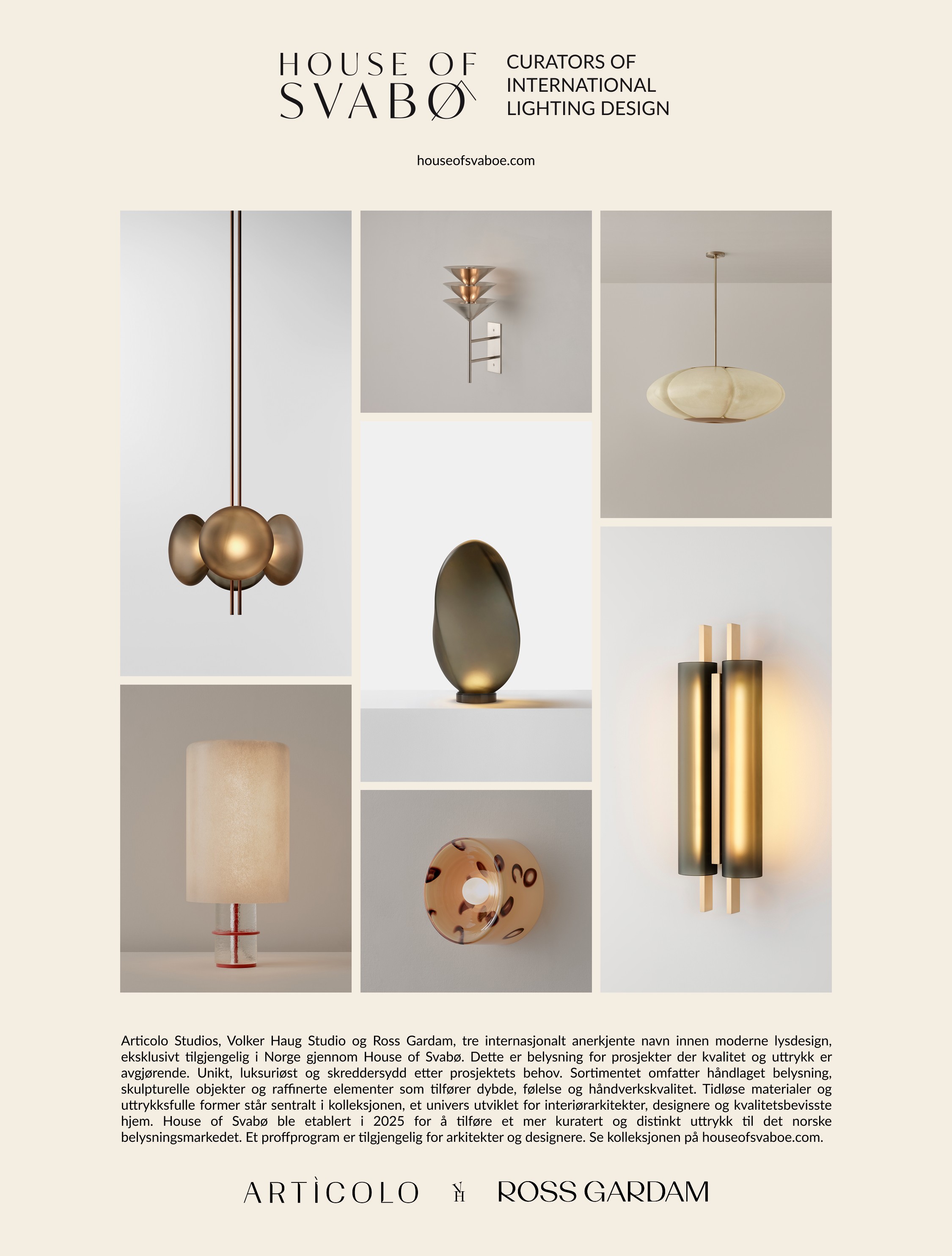 The selected print ad ran as a full-page feature in Interiørmagasinet in early 2026 and was received positively by the client for its clarity, studio-like presentation of product, and alignment with the House of Svabø aesthetic. The series provided the brand with a versatile visual asset that supported both their retail positioning and their broader design narrative.